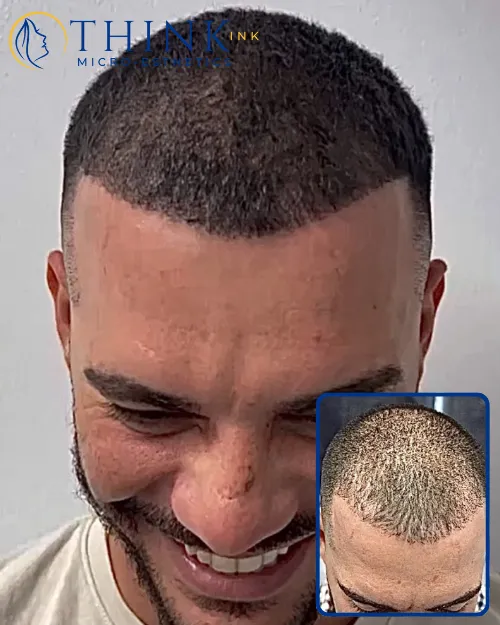 Of course! Some people call it SMP, others Scalp Micropigmentation, Hair Tattoo, Scalp Tattoo, or even Microblading of the scalp. Regardless of what you call it, we look at it as a collaborative effort between the artist and client. We will offer our professional advice on what hairline would look good on you but ultimately the choice is yours!